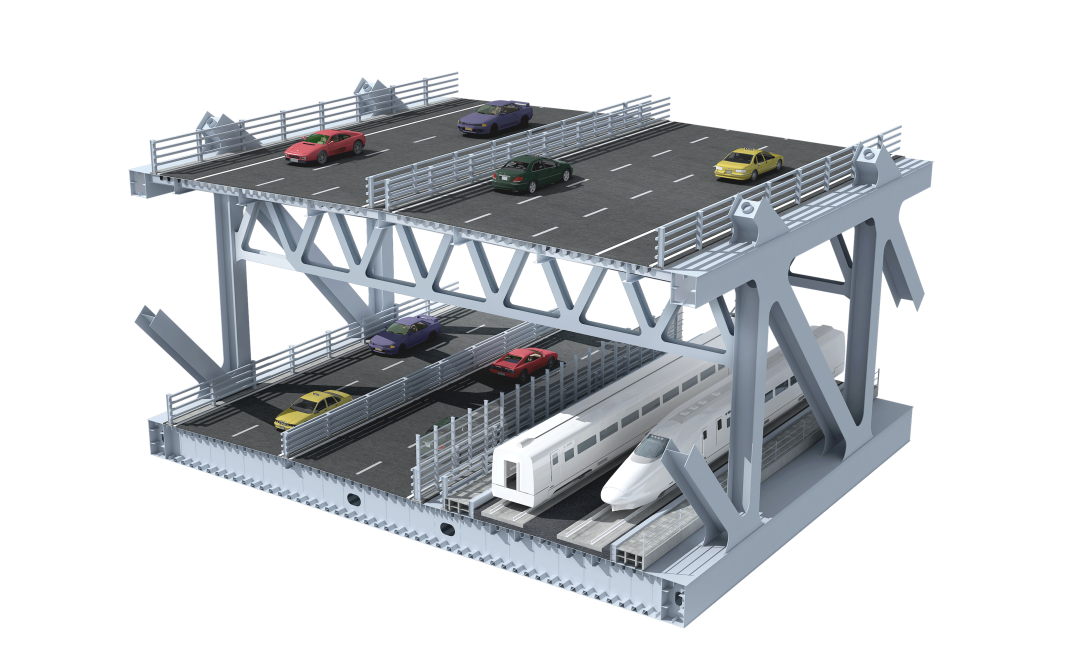 特大桥主河道桥钢梁容忍双主桁“N”形钢桁梁,桁高15.5米,桁后面间隔距离35米,主桥钢梁在工厂内整节段加工制作、搬家,全桥共9个小节段,节段直径14米~28米,节段信噪比900吨~1856吨。