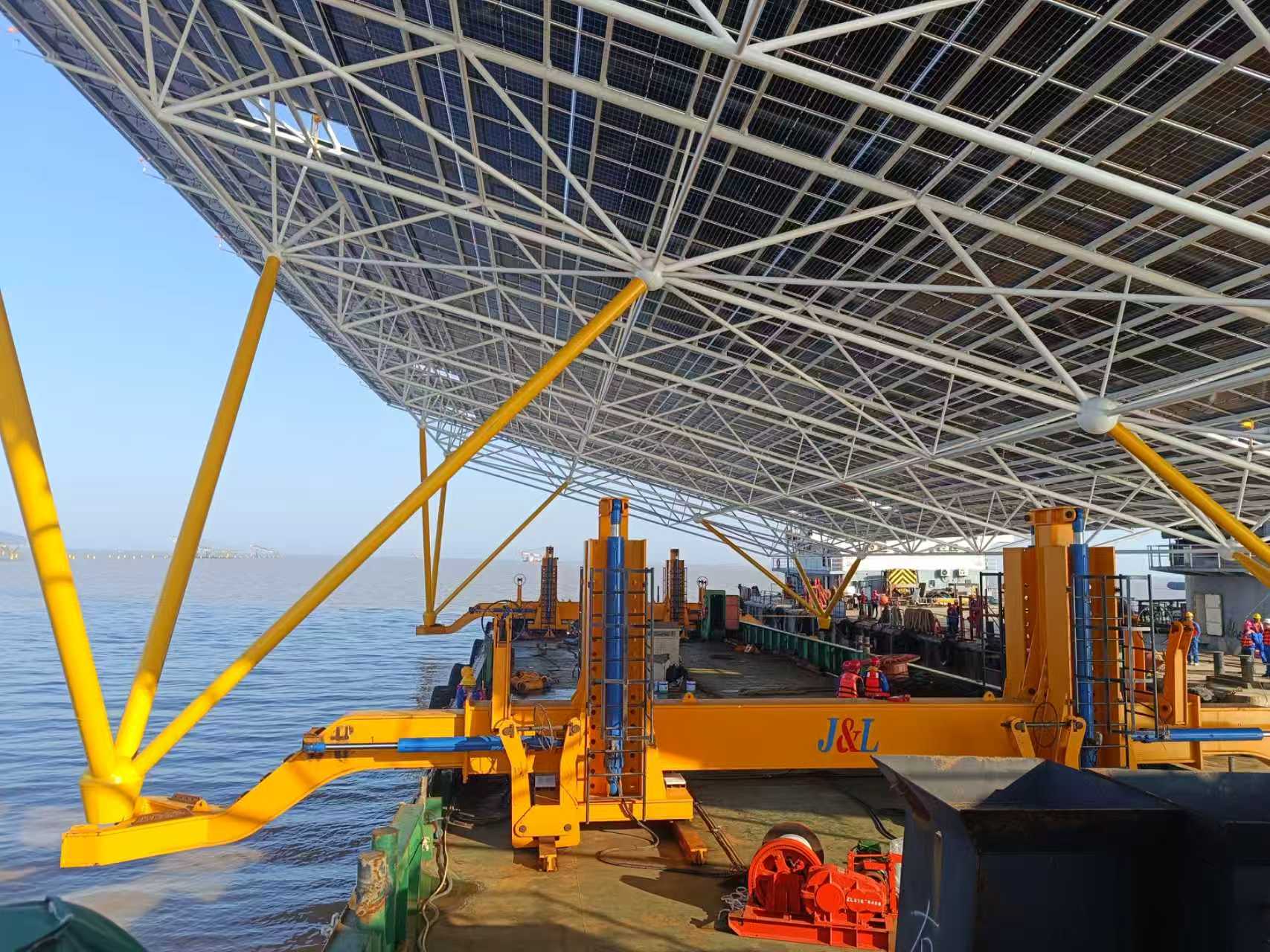 海上光伏全体布局浮托运输调理设备已胜利操纵于国华HG14海上光伏名目上,国华HG14海上光伏名目是今朝环球最大的开放式海上光伏名目,该名目初次操纵浮托法装置,经由过程本设备处理了惯例功课体例没法在浅海装置的困难,晋升了装置效力。获得了客户的承认。