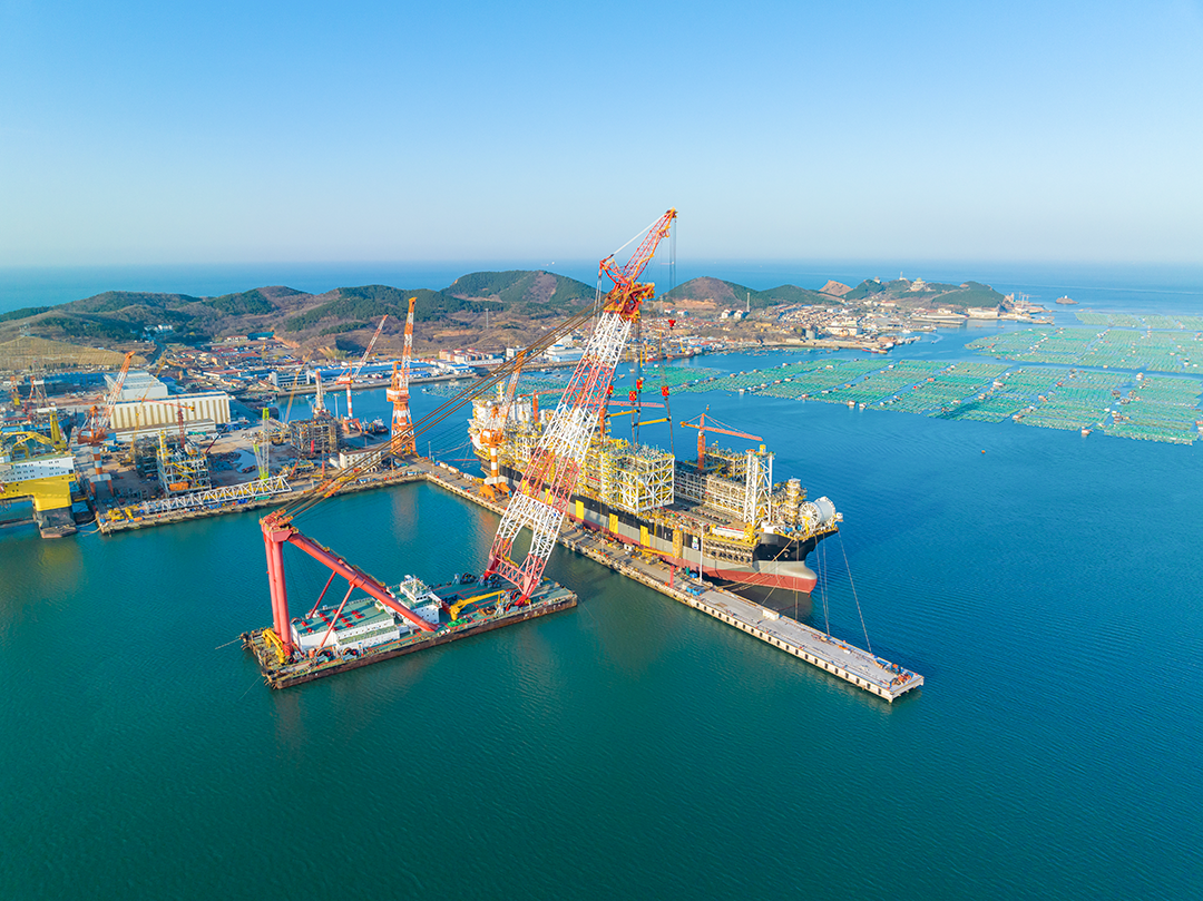 巨力索具5000T吊梁体系中动力我國独立自主打造的上限货重、上限储宇量的最新型海底浮式煤气自然规律气产出装配工艺NGUYA FLNG上端接口设备吊装得胜,为事后级任务开工奠基仪式了稳固本身。