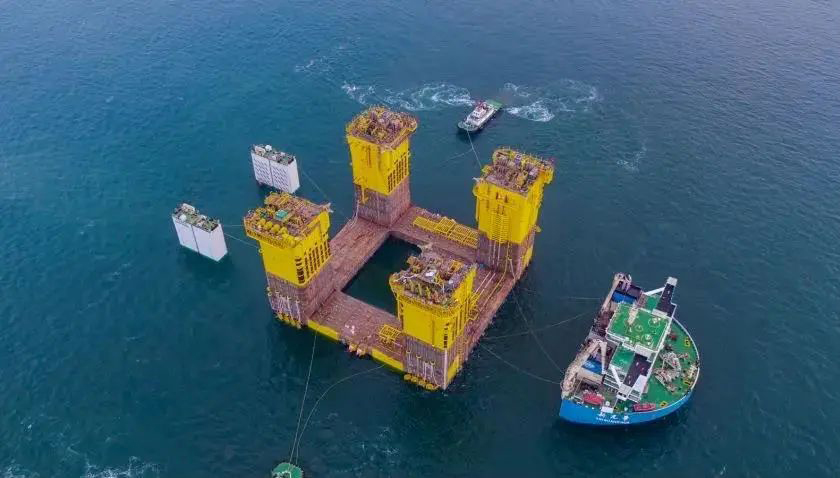 “深海一号”动力站是同时具有油气处置、凝析油贮存和油气外输功效的深水出产功课平台。动力站由上部组块和船体两部分组成,面积相称于两个足球场巨细,总高度达120米,相称于40层楼高,排水量11万吨,相称于三艘中型航母的排水量。