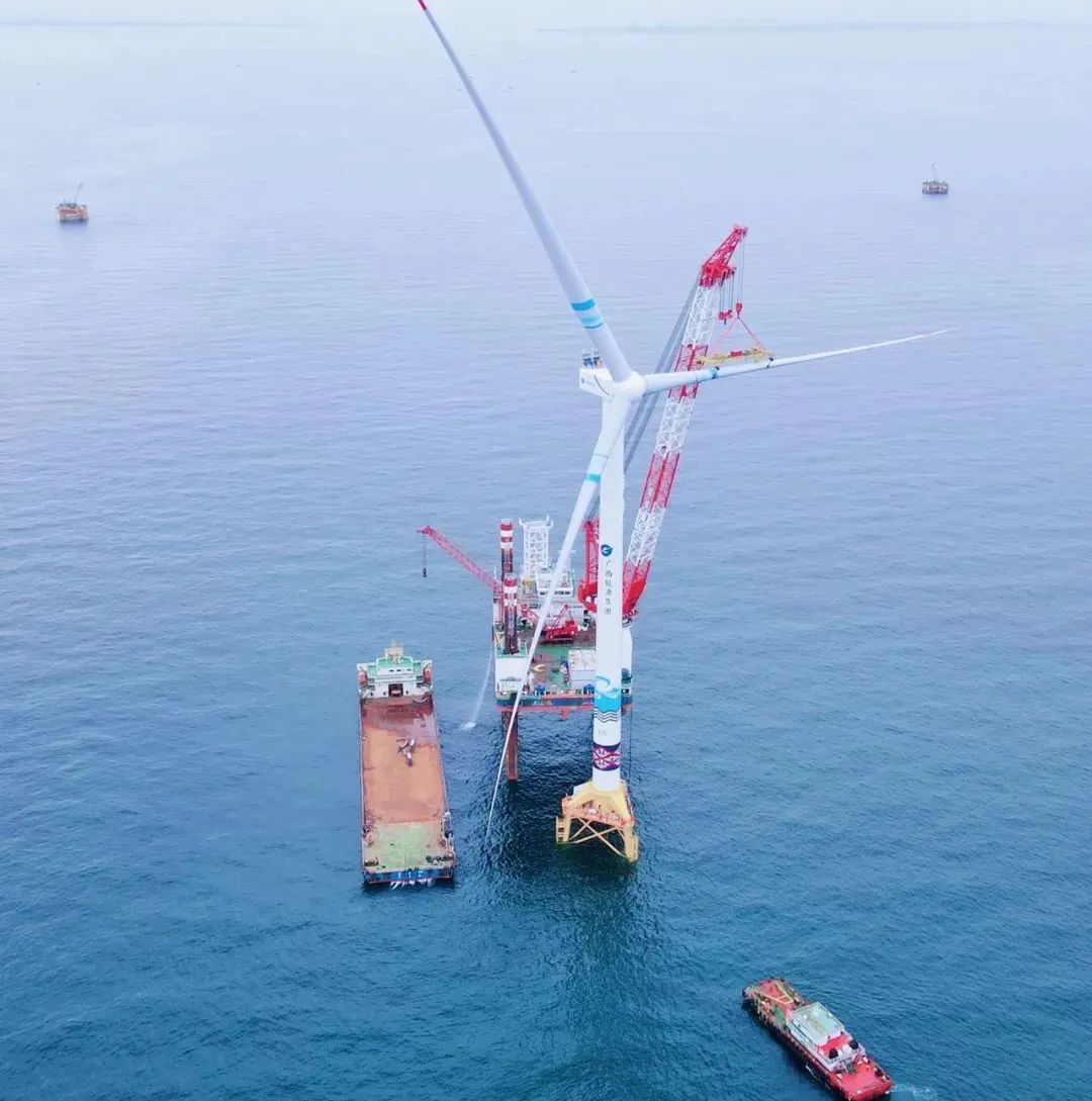据悉,本次吊装的风机电组单支叶片长111.5米、重42吨,叶轮扫风面积40627平方米。
